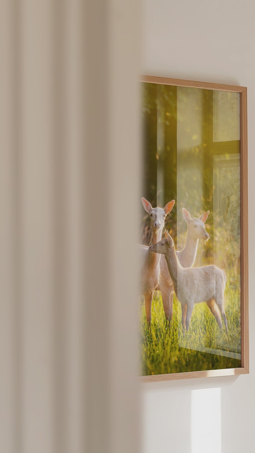 Motivet trycks på matt premiumpapper som framhäver ljusets varma nyanser och djurens naturliga skönhet.