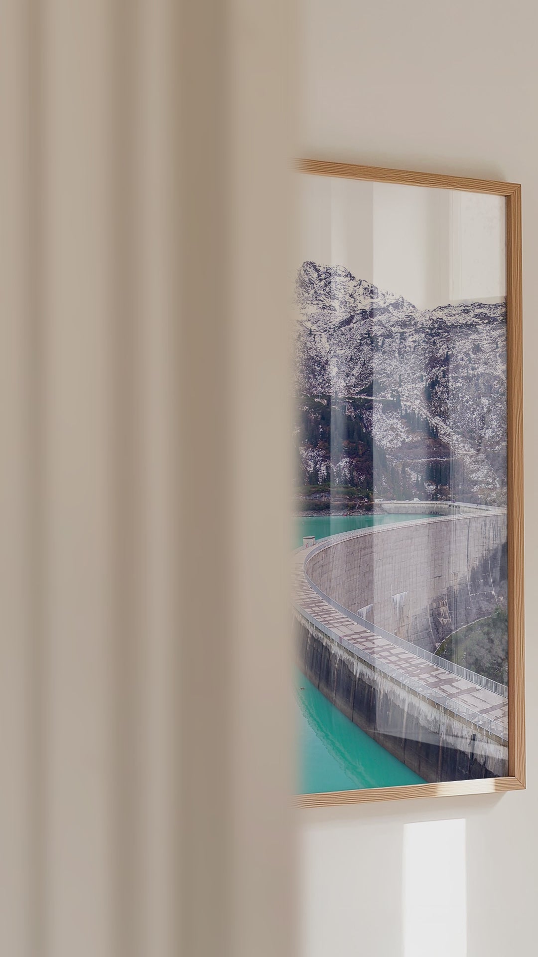 Bilden fångar kontrasten mellan naturens stillhet och människans ingenjörskonst – kraft och harmoni i perfekt balans.